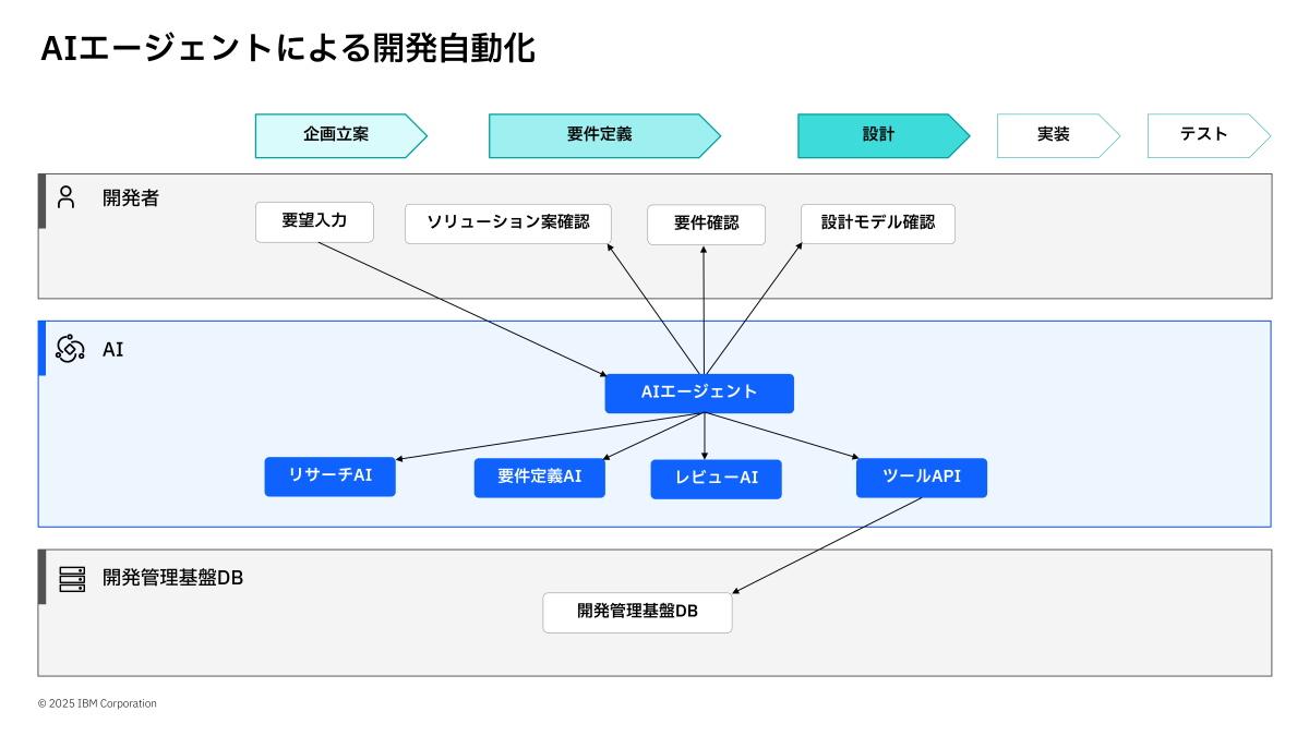なお、IBMでは開発データの管理基盤としてEngineering Lifecycle Management(ELM)を提供しており、現在、AIエージェントとの連携による設計・開発体験の高度化に向けた技術検証を進めている。