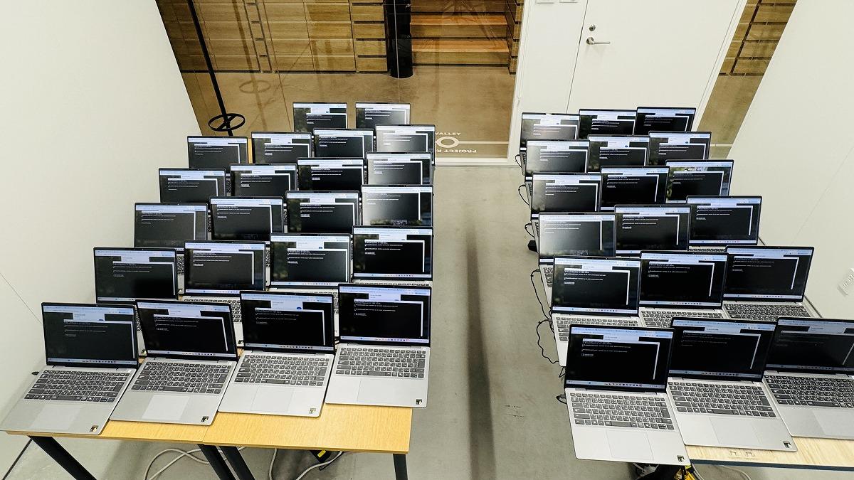 本検証では、GIGAスクール構想で多く採用された8社の無線APを対象とし、実際の教育現場を想定した環境を構築。無線APそのものの性能を公平に検証するために、インターネット回線の影響を排除したローカルネットワーク環境を用意し、使用チャネルを固定。無線APのファームウェアは最新の推奨バージョンとし、推奨設定を施している。これに接続する端末としては、現在教育現場で多く採用されているChromebookを40台を用意した。