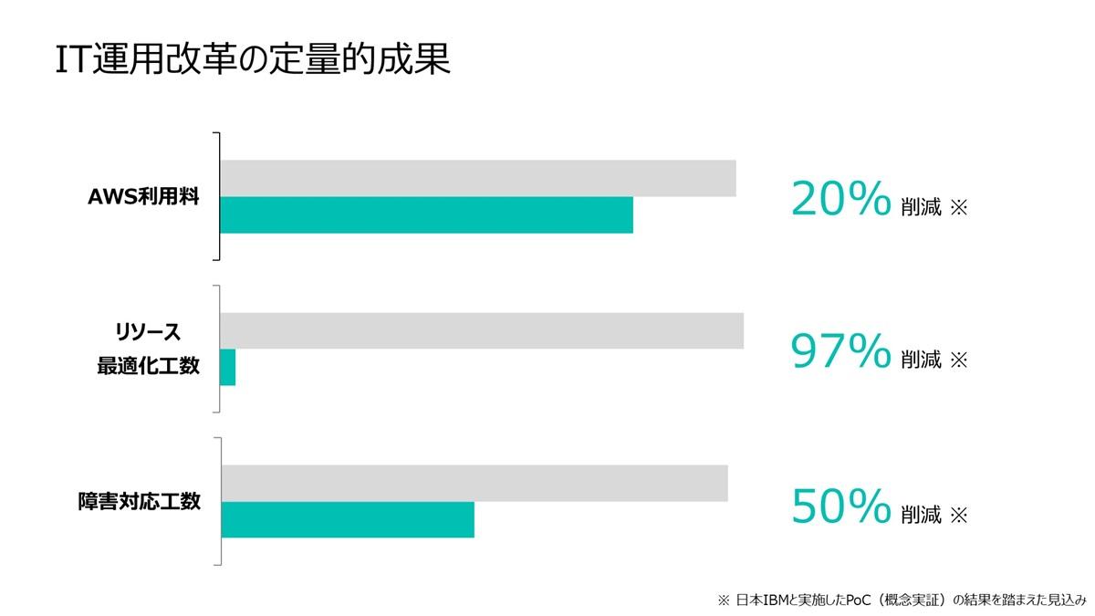 2024年7月からTurbonomicのPoC(概念実証)を開始。その結果、AWS利用料を20%削減し、リソース最適化にかかる作業をサーバ1台あたり「6.25時間から10分」と97%も削減できることを確認した。