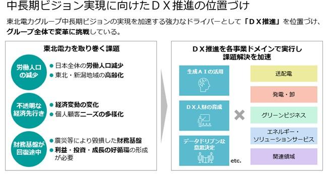 同社グループは2024年4月に、2030年に向けた今後の経営展開である「よりそうnext +PLUS」を発表した。このビジョンでは、2030年のありたい姿として、「東北発の新たな時代のスマート社会の実現に貢献し、社会の持続的発展とともに成長する企業グループ」を掲げ、CN・DXを成長の機会として既存事業の強化と新たな事業領域の拡大に挑戦する方針だ。特にDX推進を、「よりそうnext +PLUS」の実現を加速する強力な原動力と位置づけ、グループ全体で変革に挑戦している。