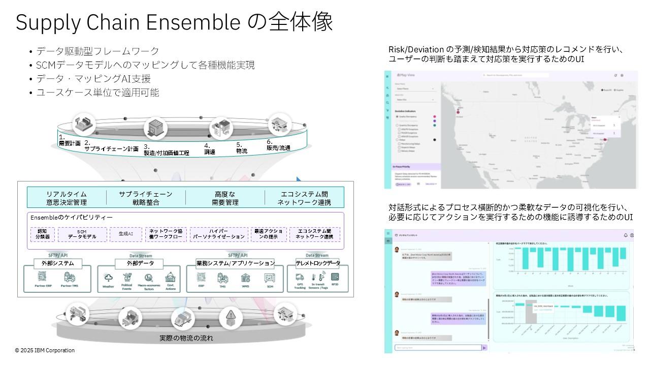 しかし、この問題は、あるテクノロジーによって解決できる可能性が見えてきた。それがAIだ。そして、サプライチェーン管理にいち早くAIを導入したのがIBMであり、その成果として発表されたソリューションが「Supply Chain Ensemble(サプライチェーン・アンサンブル)」である。