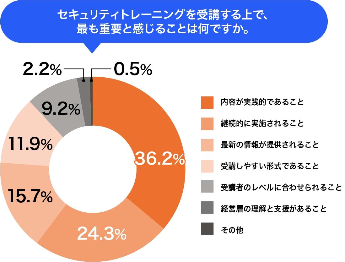 当社の調査結果では、セキュリティトレーニングで最も重要だと感じることとして「内容が実践的であること」が最多でした。長年にわたりセキュリティ対策に従事してきた者として、大いに同意します。