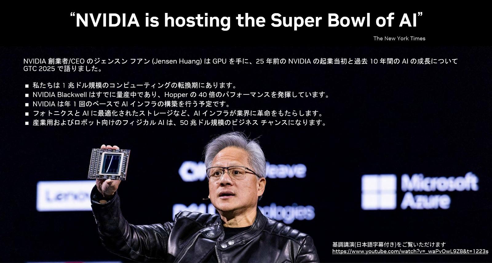 「2025年は日本がAI分野で大きく飛躍した年です。だからこそ、GTCで披露される日本企業をはじめとするさまざまな先進事例を見て、多くの日本企業に一歩を踏み出すきっかけにしていただきたいと思います」(堀内氏)