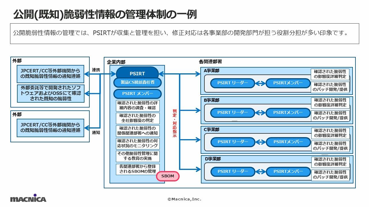 「特にPSIRTは、社外からの脆弱性報告の窓口となり、インシデント発生時には迅速な対応を指揮する司令塔の役割を担います。24時間以内の報告義務を遵守するためには、このPSIRTの機能が極めて重要になります」と飯田氏は強調する。