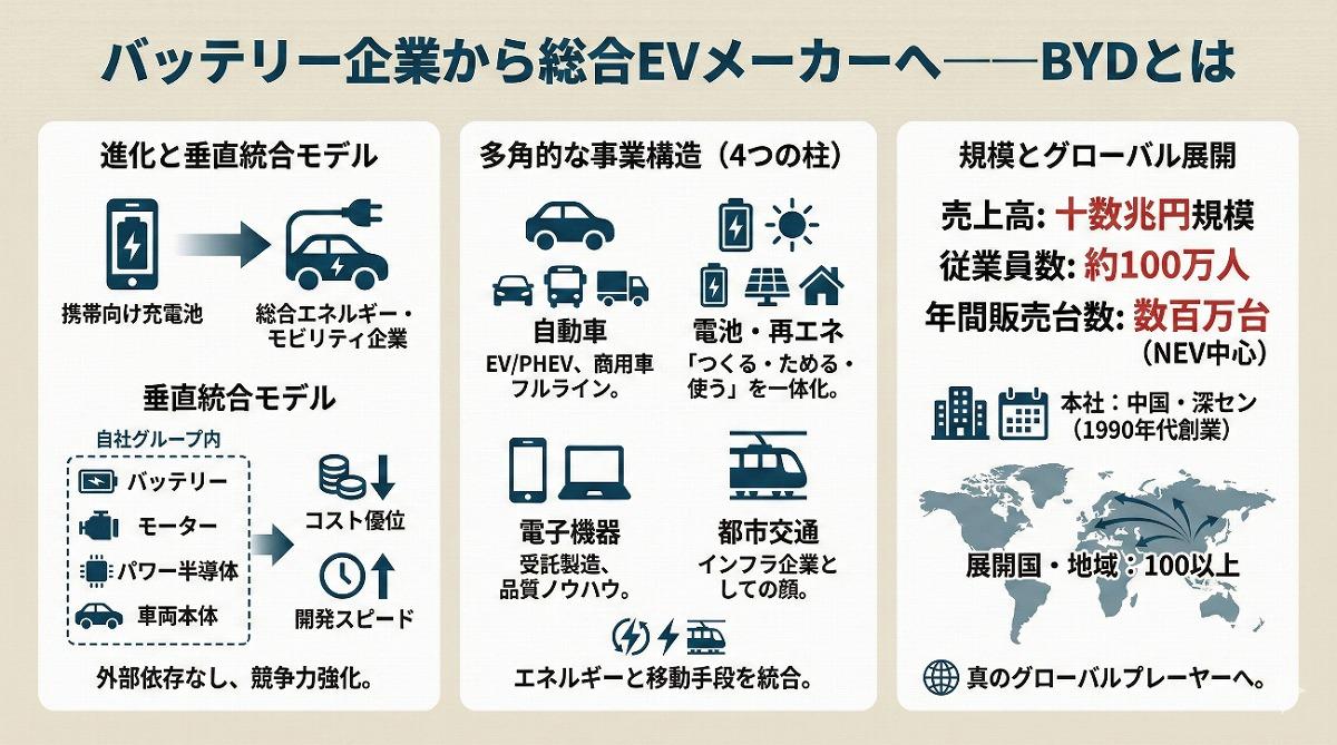 バッテリー企業から総合EVメーカーへ──BYDとは
