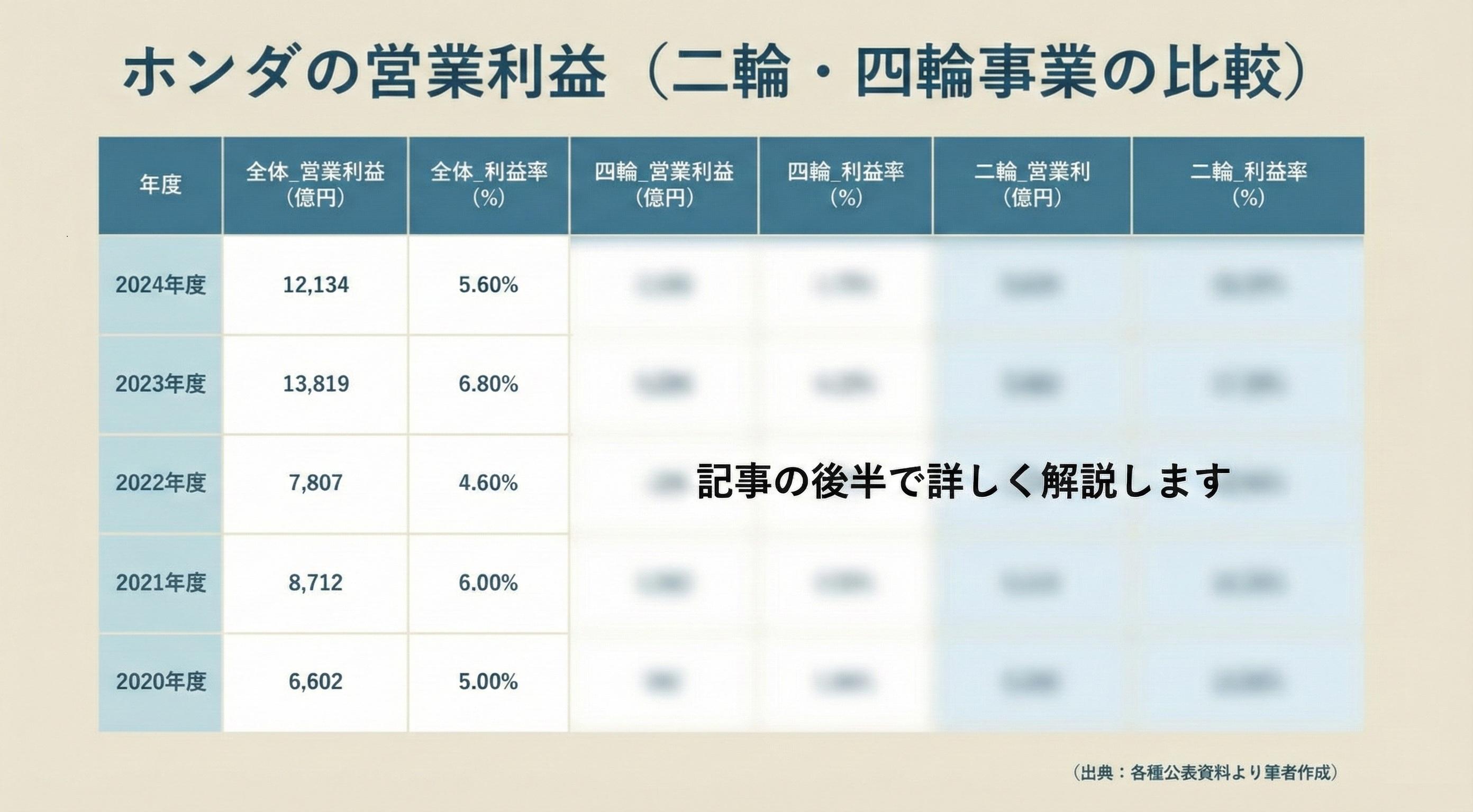 ホンダは、もともとオートバイのメーカーから成長した企業です。そのため、今でもホンダのオートバイは、高い評価を受けており、そして確実に儲かっている部門なのです。ここからは、ホンダの二輪事業がどれだけ儲かっているのか、詳しく見ていきます。