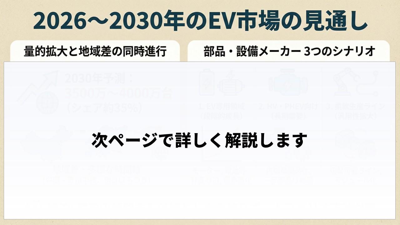こうした兆候は以前から存在していた。それでも当初は、EVが不可逆的に拡大するとの見方が支配的で、地域差や収益性の問題は過小評価されていた。このねじれが、減速を「想定外」に見せた最大の要因だった。