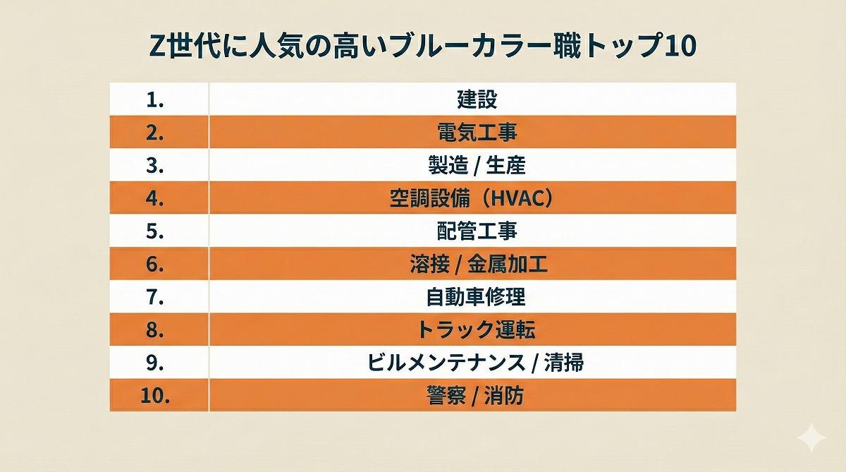 なお、2026年にブルーカラー職に就くことを計画しているZ世代の中で人気の高い職業トップ10は以下の図5の通りだ。