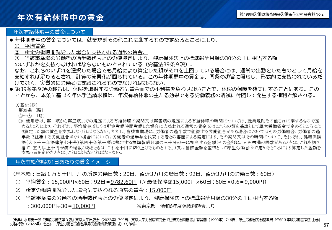 現行の労働基準法では、年次有給休暇取得時の賃金について、下記のいずれかによることが認められています。