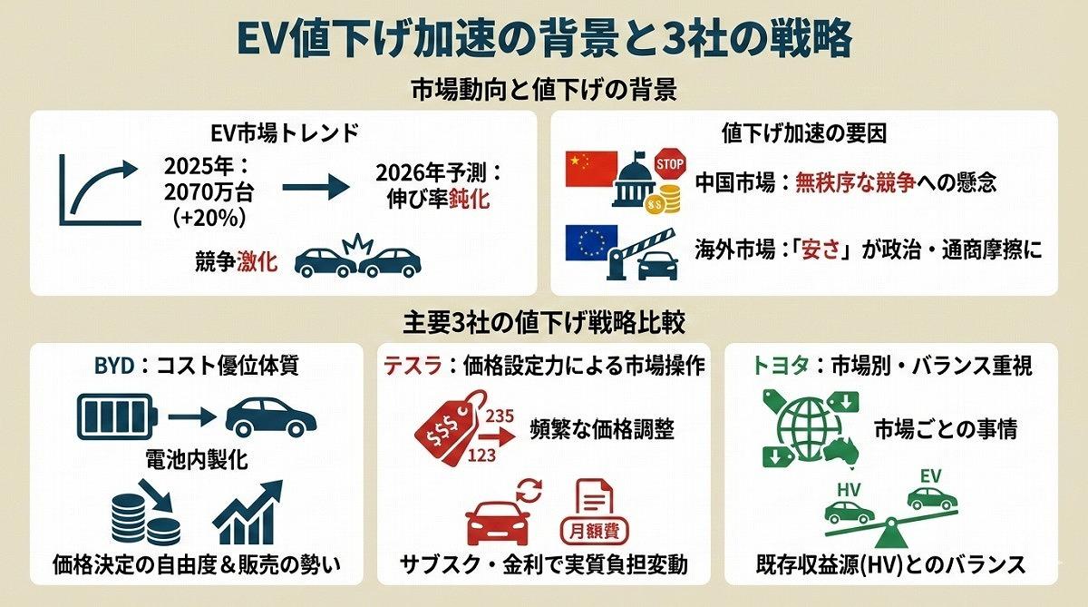 BYD・テスラ・トヨタ3社の値下げ戦略の違い