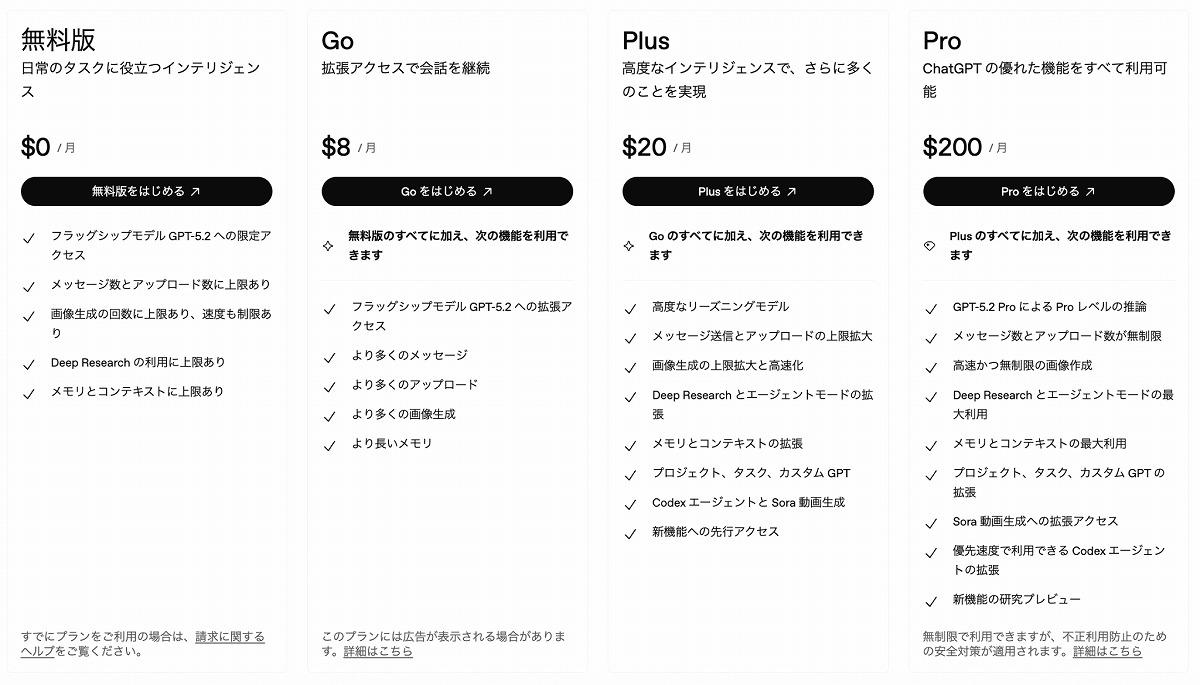 GPTsとは、事前にプロンプトを設計し、ChatGPTをカスタマイズできる機能です。無料プラン/Goプランを利用している場合でもGPTsを利用することはできますが、カスタマイズすることはできません(画像1)。