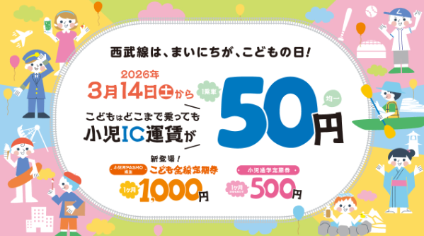西武グループは今、なりふり構わぬ勢いで「沿線住民の囲い込み」に動いている。その象徴と言えるのが、2026年3月に実施される運賃改定だ。その中身は、子育て世帯にとって衝撃的なものだった。小児IC運賃を一律50円にするだけでなく、小児通学定期を一律1カ月500円にするという。さらに驚くべきは、小児ICカード限定で、月額1,000円で西武全線が乗り放題となる「小児全線フリー定期券」の導入だ。これは大手私鉄初の試みである。