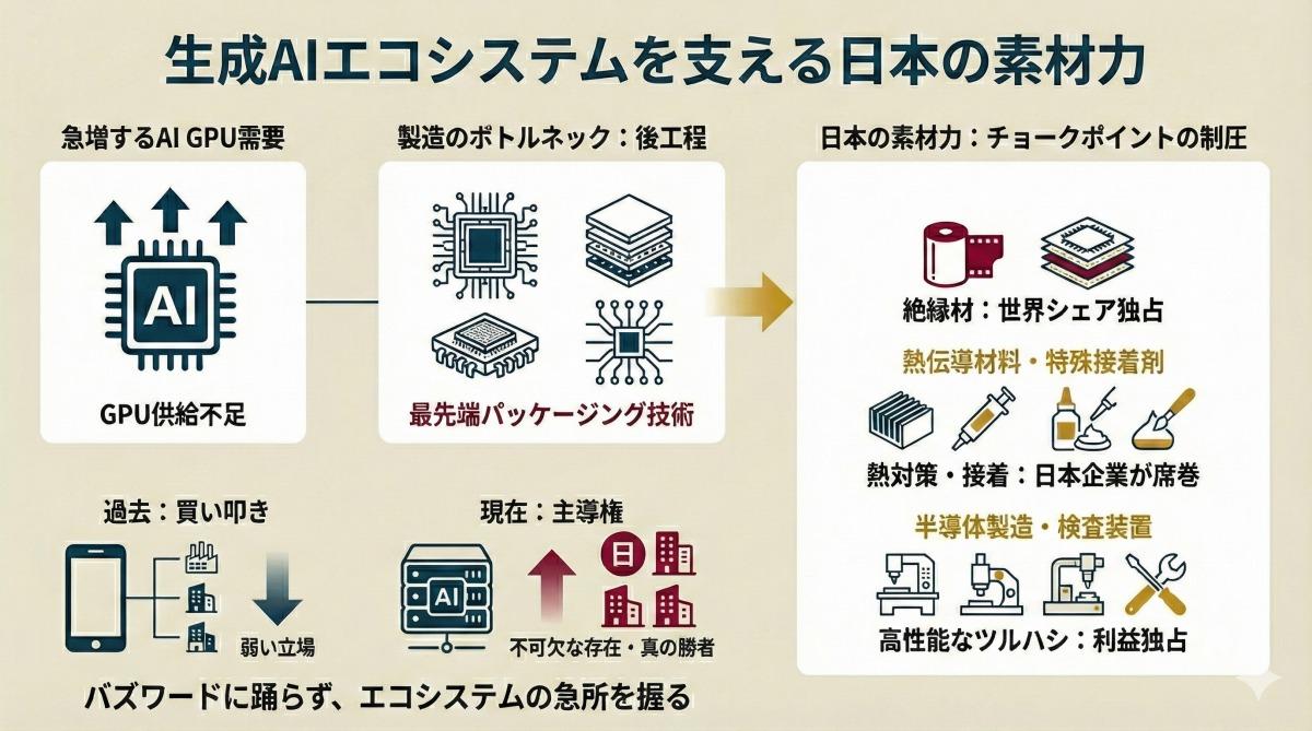 日本の隠れた企業たちは、このエコシステムのチョークポイント(関所)を完全に制圧しているのである。