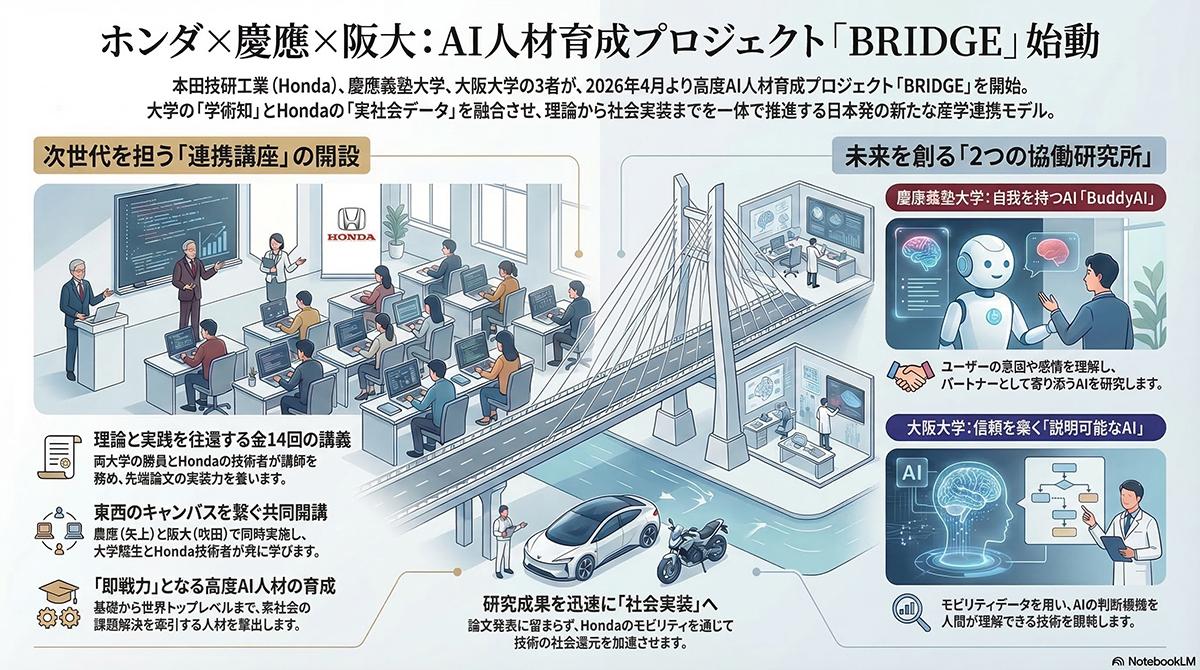 ホンダと慶大と阪大がAI人材育成と技術開発の産学プロジェクト開始
