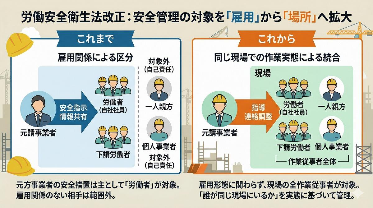 ポイント1:安全管理の対象を「雇用」から「場所」へ広げる