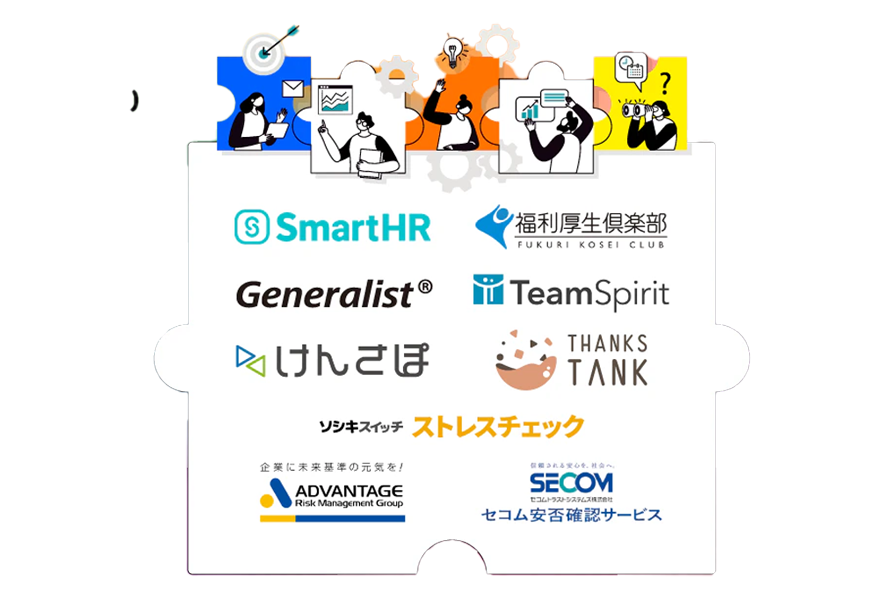 労務管理、勤怠管理、福利厚生、安否確認、健康診断予約、人事給与管理、コミュニケーション促進、ストレスチェック、タレントマネジメント など多くのHRシステムを一度に体験いただけます。