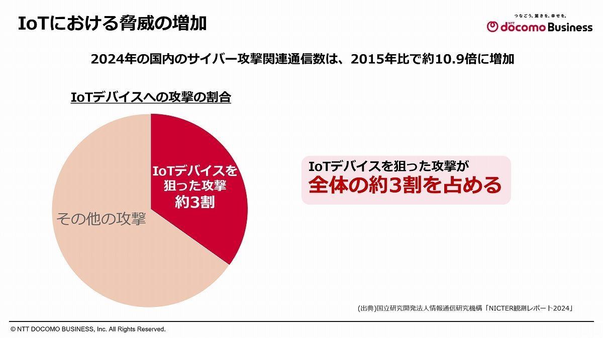 この傾向はデータからも読み取れる。情報通信研究機構(NICT)のレポートによると、サイバー攻撃は年々増加しており、全体の約30%がIoT機器を標的としていると報告されている。