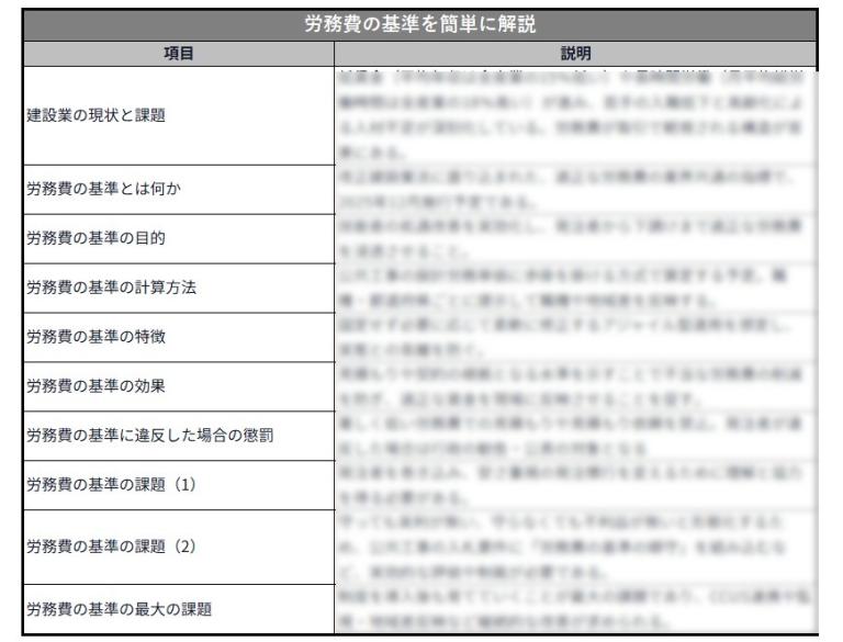 【Excel資料】「労務費の基準」を簡単に理解できるポイントまとめ表