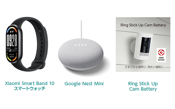本Webセミナーにお申込み・受講いただき、セッション終了後に表示されるアンケートに回答をいただいた方から抽選で「Xiaomi Smart Band 10 スマートウォッチ」、「Google Nest Mini」、「Ring Stick Up Cam Battery」を各1名様に進呈いたします。