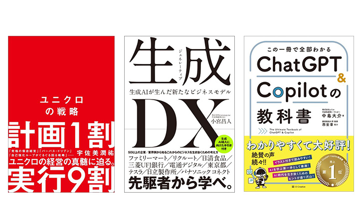 本Webセミナー受講後に表示されるアンケートにお答えいただいた方から抽選で、「ユニクロの戦略」、「生成<ジェネレーティブ>DX 生成AIが生んだ新たなビジネスモデル」、「この一冊で全部わかる ChatGPT & Copilotの教科書」を各5冊、計15名様にプレゼントいたします。