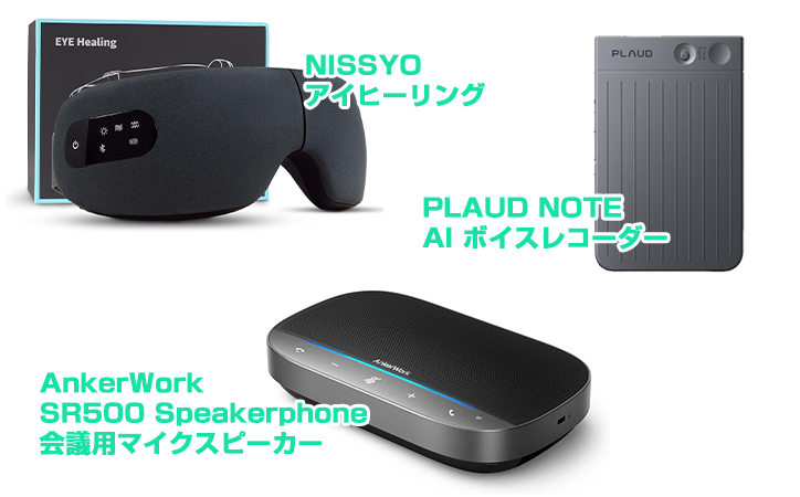 本セミナーに来場された方から抽選で、PLAUD NOTE AI ボイスレコーダー」、「AnkerWork SR500 Speakerphone 会議用マイクスピーカー 」、「NISSYOアイヒーリング」など貴方のデジタルライフをサポートするデジタルグッズが当たります。